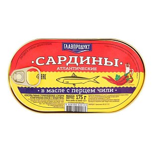 Сардина 175г Главпродукт в масле с перцем чили Ханса
