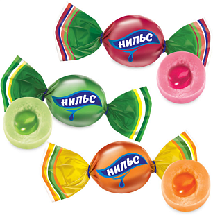 Конфеты жевательные Нильс ассорти (вишня, яблоко, апельсин) вес