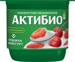 Йогурт 130г ТМ Актибио Клубника 2,9%, стакан