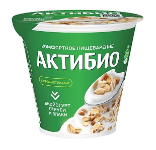 Биойогурт 220г ТМ Актибио Отруби/злаки 2,9%, стакан