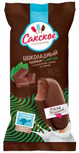 Морож. эскимо, 0,08 Пломбир Шоколадный в шоколаде с мятой ТМ Сакское мороженое