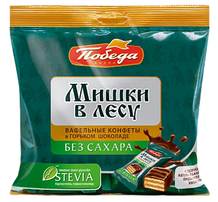 Конфеты вафельные 150г Победа в горьком шоколаде без добавления сахара Мишки в лесу