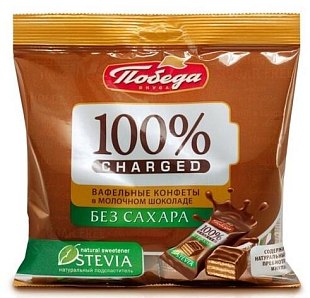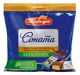 Конфеты вафельные 150г Победа в молочном шоколаде без добавления сахара Соната